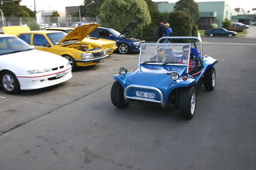 Now I could test drive it and fix a few running problems and take it to the exhaust place, the nice twin system was suppose to be the finishing touch but it was still missing something, I had a small storage area behind the back seats and I thought it would be the perfect spot to put two 7x10 bad boys and an amp to run them just nicely which is all neatly run off my I-river. By this time we're all ready to go with about a week to spare for massive Eastside unveiling which was at the Good Guys dyno day where she pulled a massive twenty-eight kW! (Never mind it looks good anyway). It was a successful day and it made a lot of heads turn. Overall I had a challenging but fun 18 months building this great little buggy and I look forward to having more fun times in my little cruising machine.