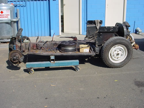 Some 16 years later, to my surprise, a neighbour up the road has a 2 acre block and had just cleared out some trees in the front and I could see down to the back and under a tree was a maroon buggy looking thing, after driving slowly up and down the street a few times I started to realise what it was. Eventually I walked down to have a close look and see, I discovered that it was a Volksy beach buggy, very similar to the one my Dad had many years ago. She was in a pretty poor state because it was full of leaves and pine cones and hadn't moved for some time. I approached the owner of the house - he said it had been sitting there for at least 3 years and after a lengthy discussion he said that the only thing salvageable is the fibreglass shell, so we agreed on $300 for the lot!! Little did he know I saw what was underneath all the leaves and muck and all the potential. I told him there would be a tow truck there tomorrow for it. And so it begins!!!!